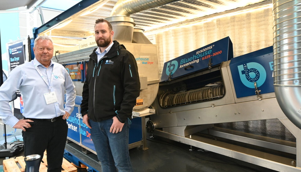 Hans Runshaug (t.v.) viser frem Blue Oceans avvanning- og tørkeløsninger under HavExpo Foto: Pål Mugaas Jensen Blue Ocean Technology leverer slamløsninger til Gigante Salmon Publisert 11.05.2022 - 10:10 Sist oppdatert 23.05.2022 - 14:34 Denne artikkelen er eldre enn to år. Bli abonnent hos LandbasedAQ Allerede abonnent? Logg inn her. For å få tilgang til dette innholdet trenger du et abonnement med LandbasedAQ.no Pluss-saker inkludert. Bli abonnent og les denne og mange andre pluss-saker. Sjekk ut våre abonnement her Allerede abonnent? Logg inn her. blue ocean technology teknologi gigante salmon rødøy slam gigante salmon
