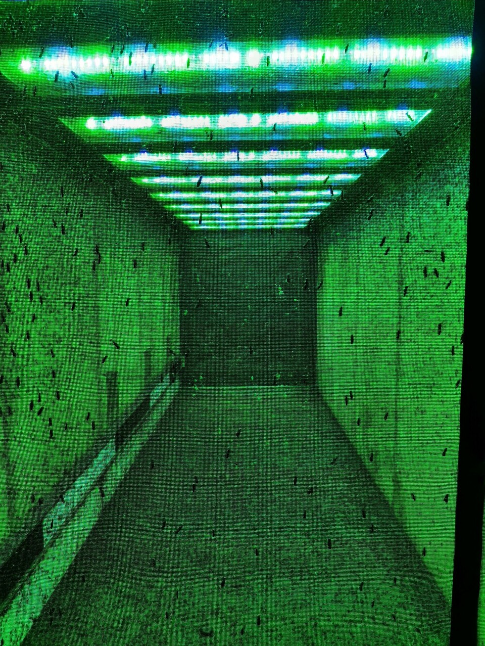 Lys brukes mange steder innen matproduksjon, her i hhv. insektproduksjon, storfe og planteproduksjon. Alle benytter lys optimalisert for sin produksjon og dermed ulike bølgelengder. Foto: Laksesystemer