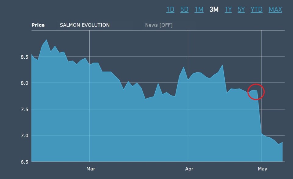 I en børsmelding skriver Salmon Evolution derfor følgende: